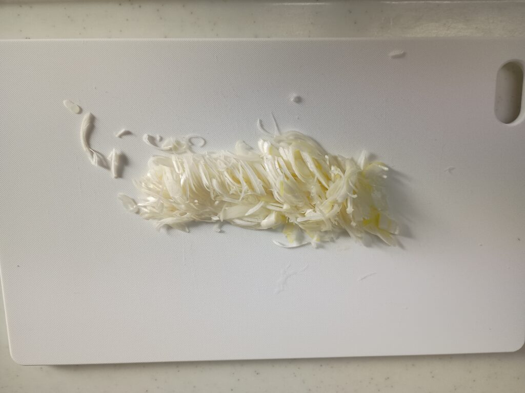 ネギは縦に半分に切り、斜めにスライスしてください。
