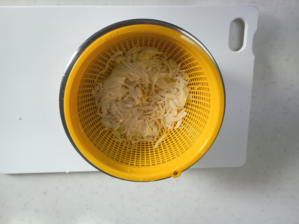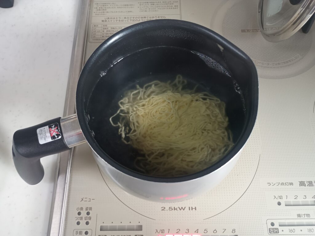 麺がぬるくなっていますので、水を切った後に熱湯をかけて温め直します。その後またお湯を切ってください。