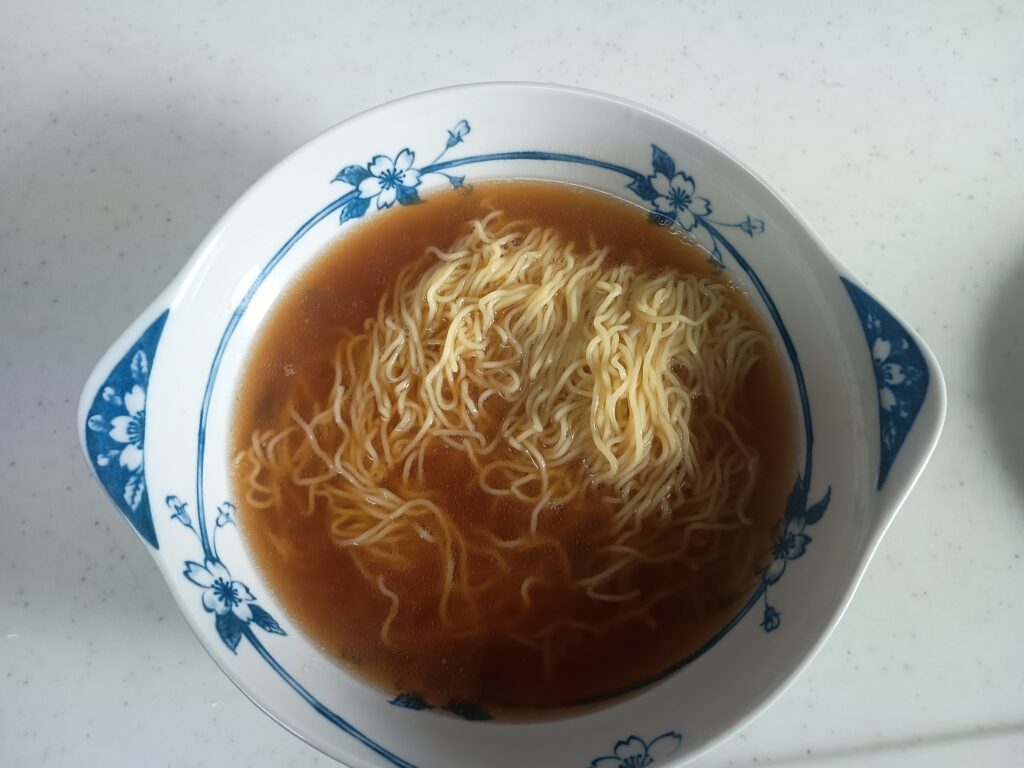 麺にスープが絡まりやすくなるよう菜箸で麺を持ち上げ一本一本が同じ方向を向くように、きれいにまとめてください。(専門用語では「麺線を整える」というそうです。)