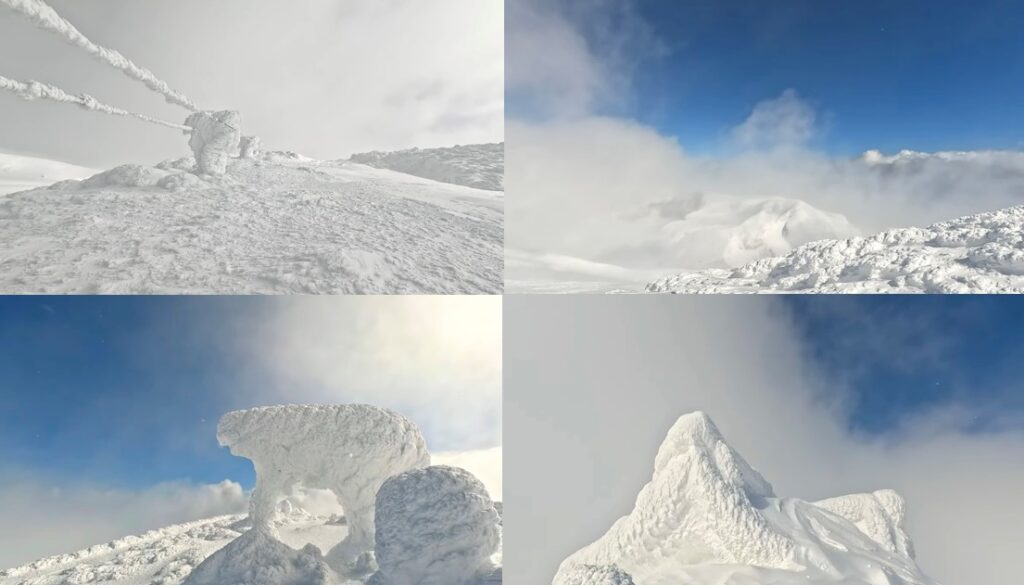 そこで待っていたのは、御釜も鳥居も、すべてが雪に包まれた静寂の世界。